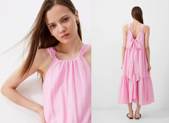 A floaty dress is a summer favourite. Our Aleska Textured Midaxi Dress partners playful styling with feminine flair, hosted by halterneck straps whilst falling to a flattering tiered skirt and tied together with a sweet back bow detailing.