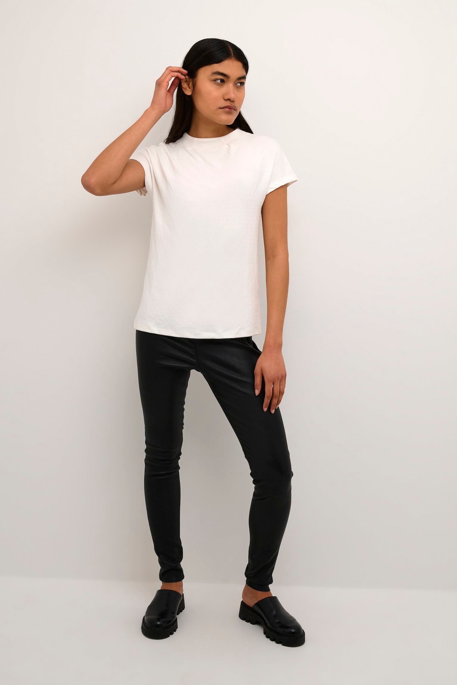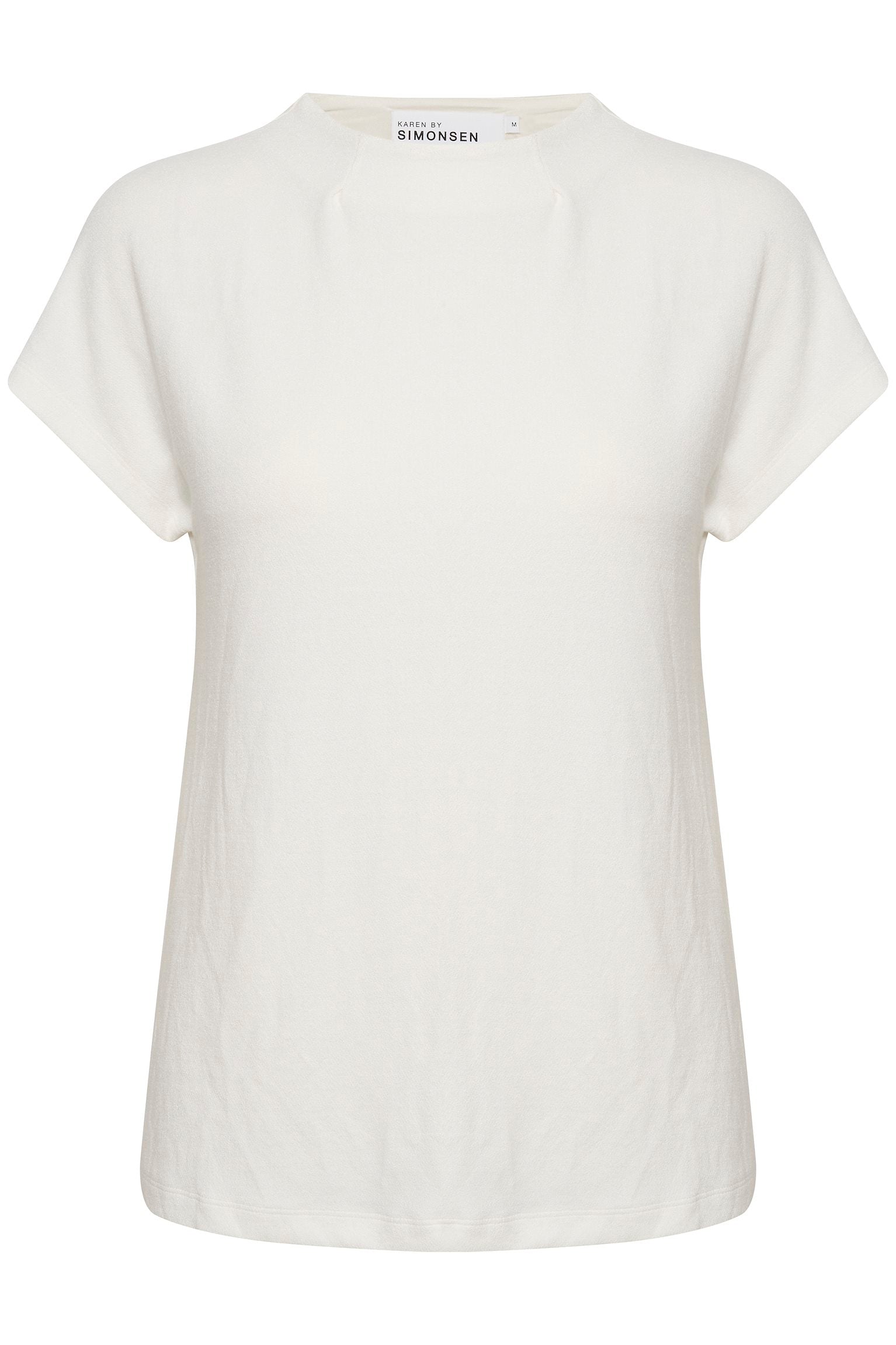 This high-quality T-shirt offers a comfortable regular fit and hip length cut. Made with a soft knitted fabric featuring a blend of Viscose, Polyester, and Elastane, it provides a perfect balance of comfort and durability. Its versatile style complements a wide range of outfits, making it a great addition to any wardrobe. Mix and match with other Karen By Simonsen clothing items to create your perfect ensemble.