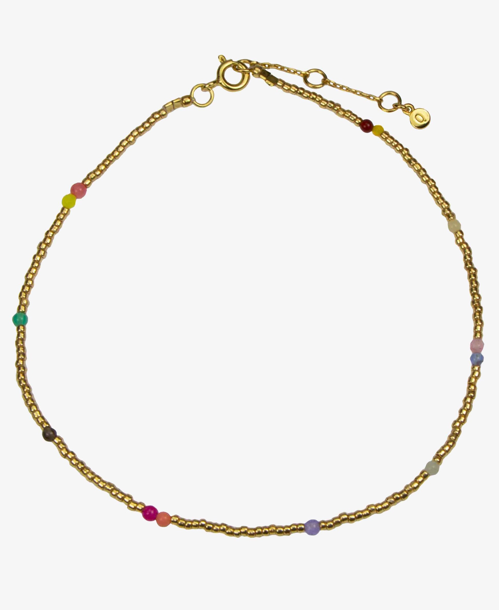 Add some colour and gold to your outfit this season, with our Doria anklet. The anklet is perfect in itself or if you want to layer several anklets.