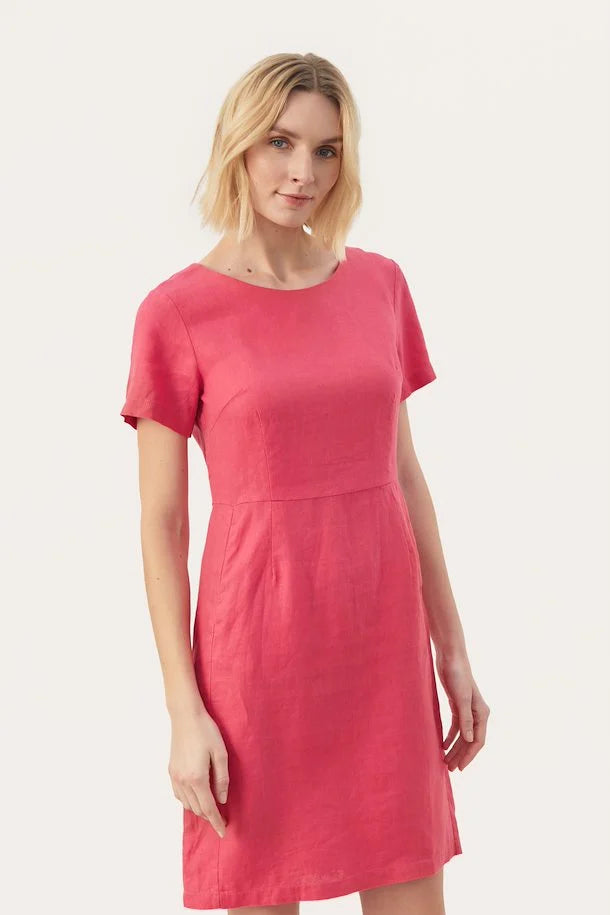 Introduce lightness and style to your wardrobe with our short-sleeved dress in 100% linen. The short sleeves and the lightweight linen fabric add an airy element, while the dress' simple design makes it versatile for various occasions. Highlight your personal style by tying a belt around the waist or pairing it with your favourite accessories.