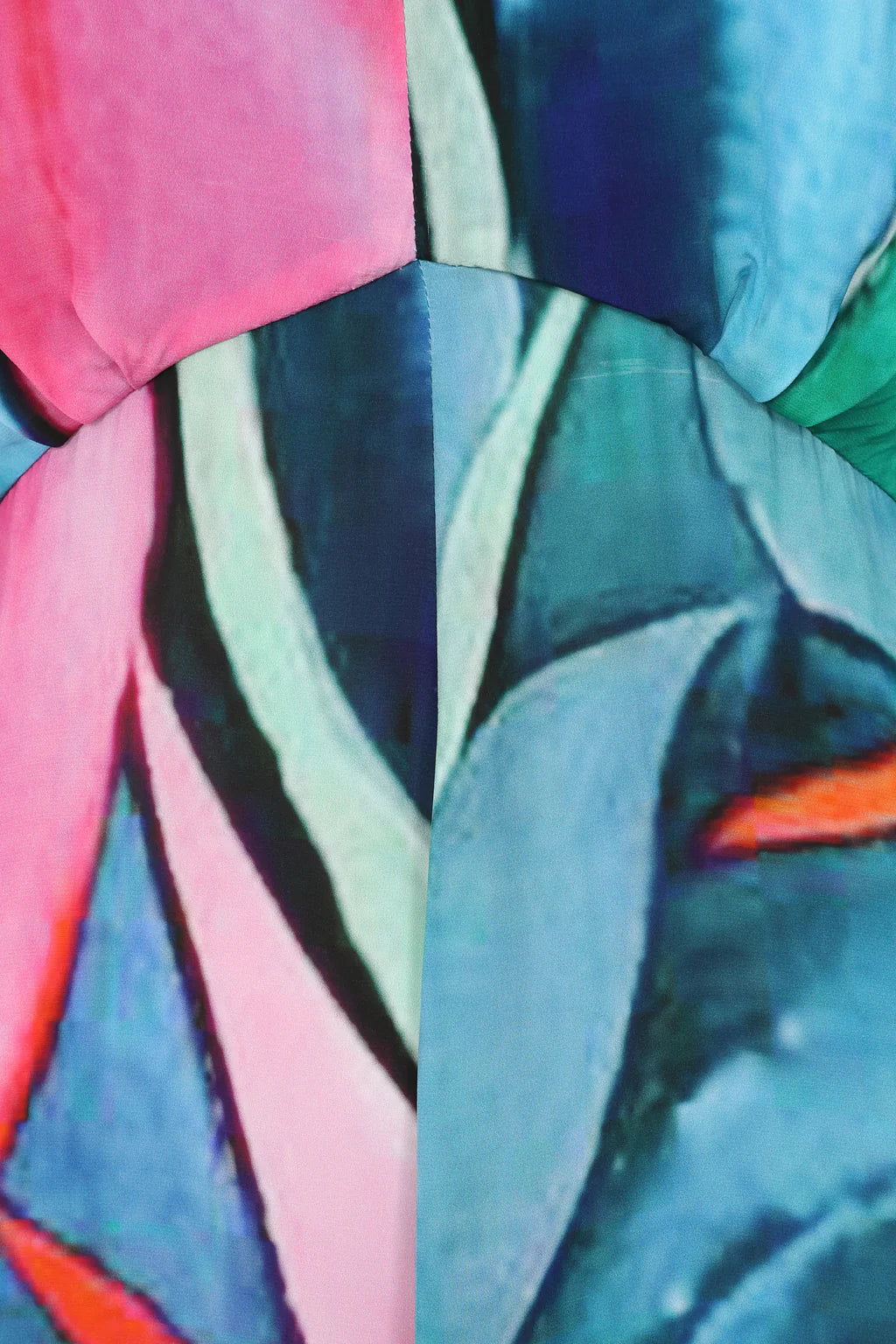 Returning for this season the “Elena” dress. This maxi dress cut on the bias is elegance and sophistication personified. With a sharp high cut neckline, based on a 70’s style from the archives, this shape looks modern and contemporary. Exaggerated puffed shoulders and balloon sleeves to the elbow give a dramatic and opulent silhouette. Zip fastening at the back. You can wear a bra with this style.