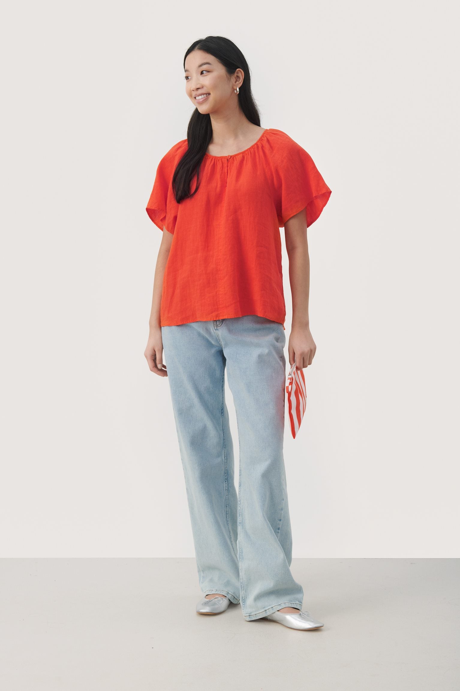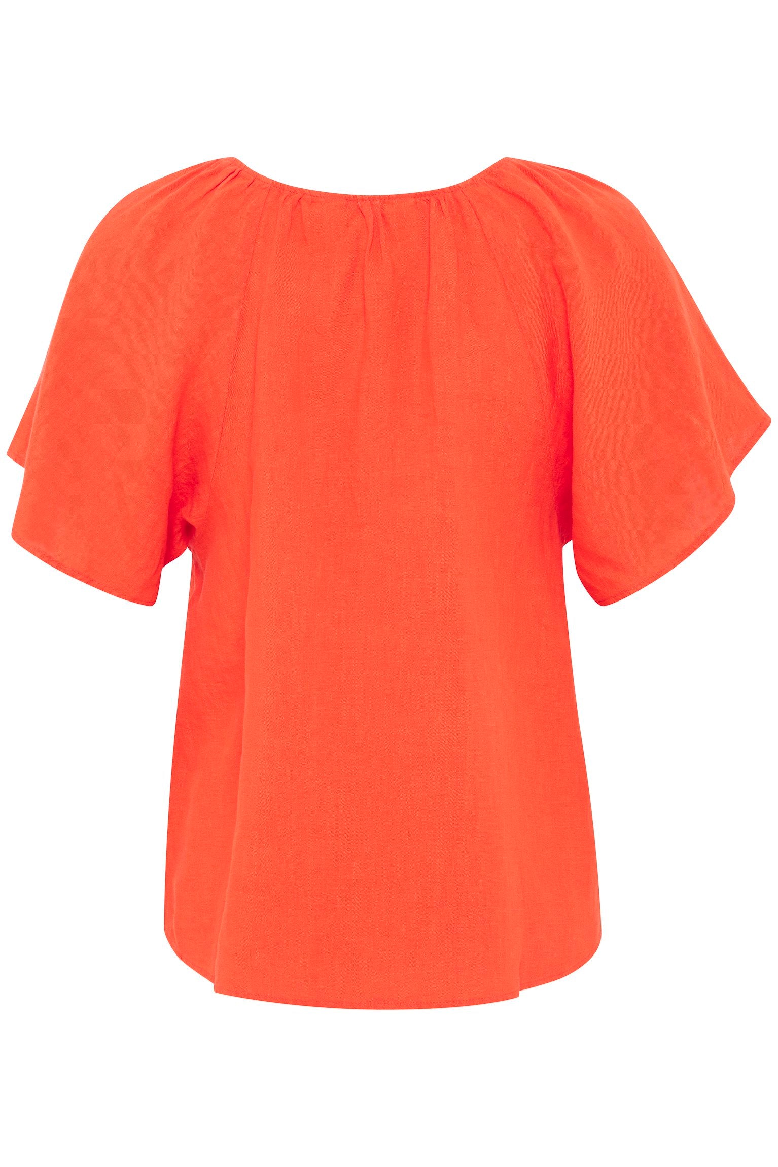 This linen blouse with short sleeves and button closure at the neck is the perfect piece to upgrade your summer wardrobe with both style and comfort. Made from 100% linen, it offers exceptional breathability and a lightweight feel, ideal for hot summer days.