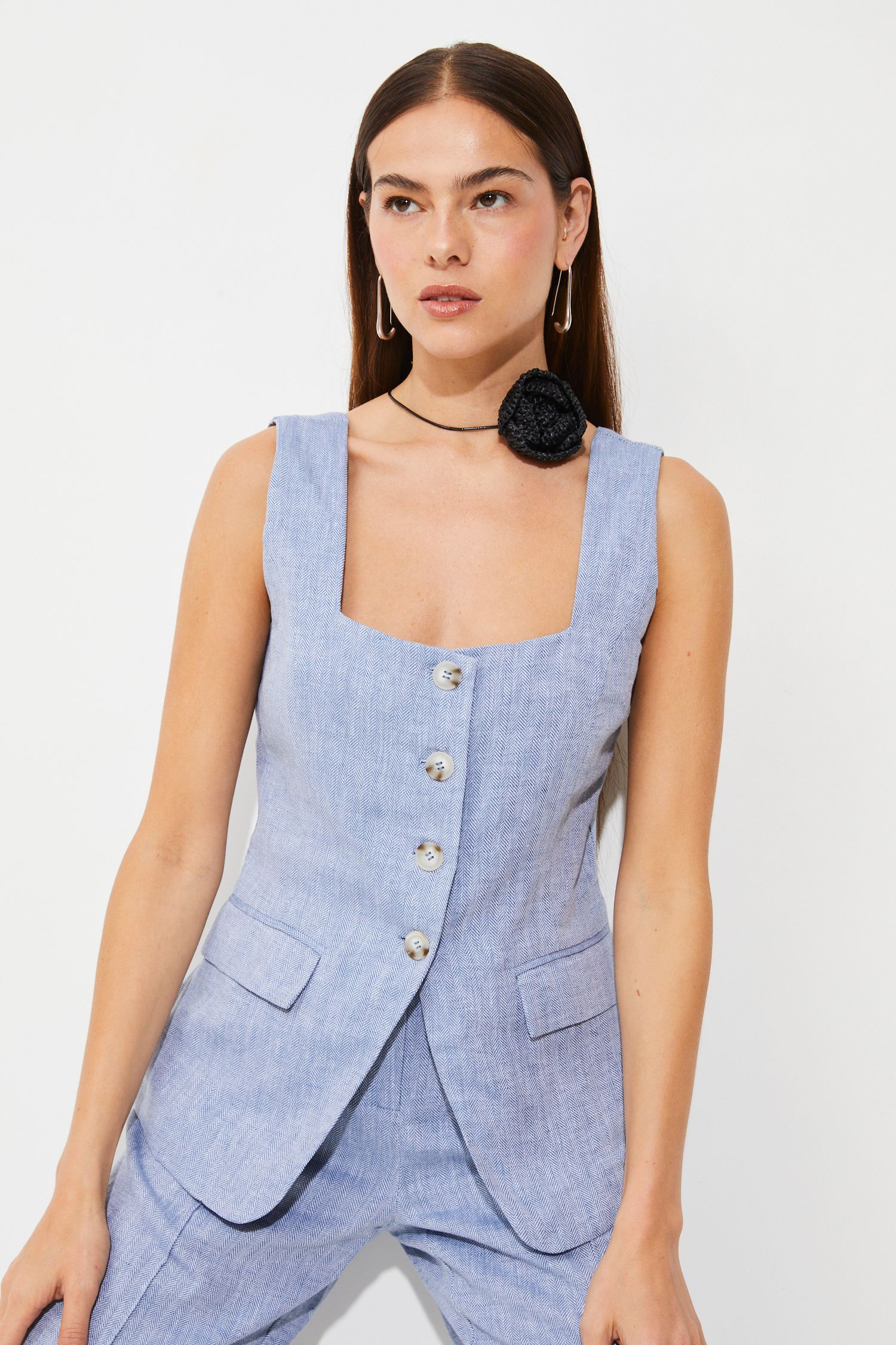 - Buttoned front