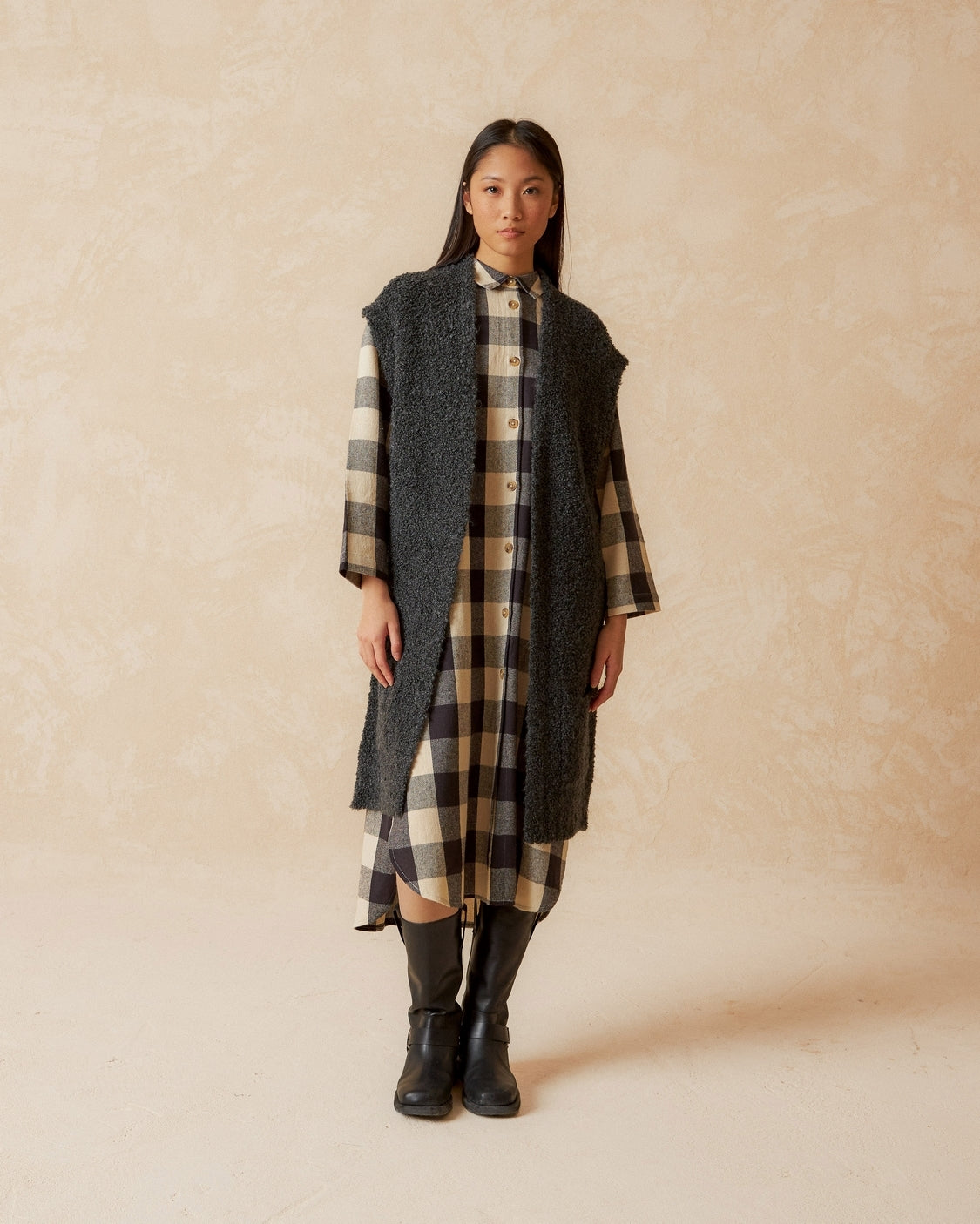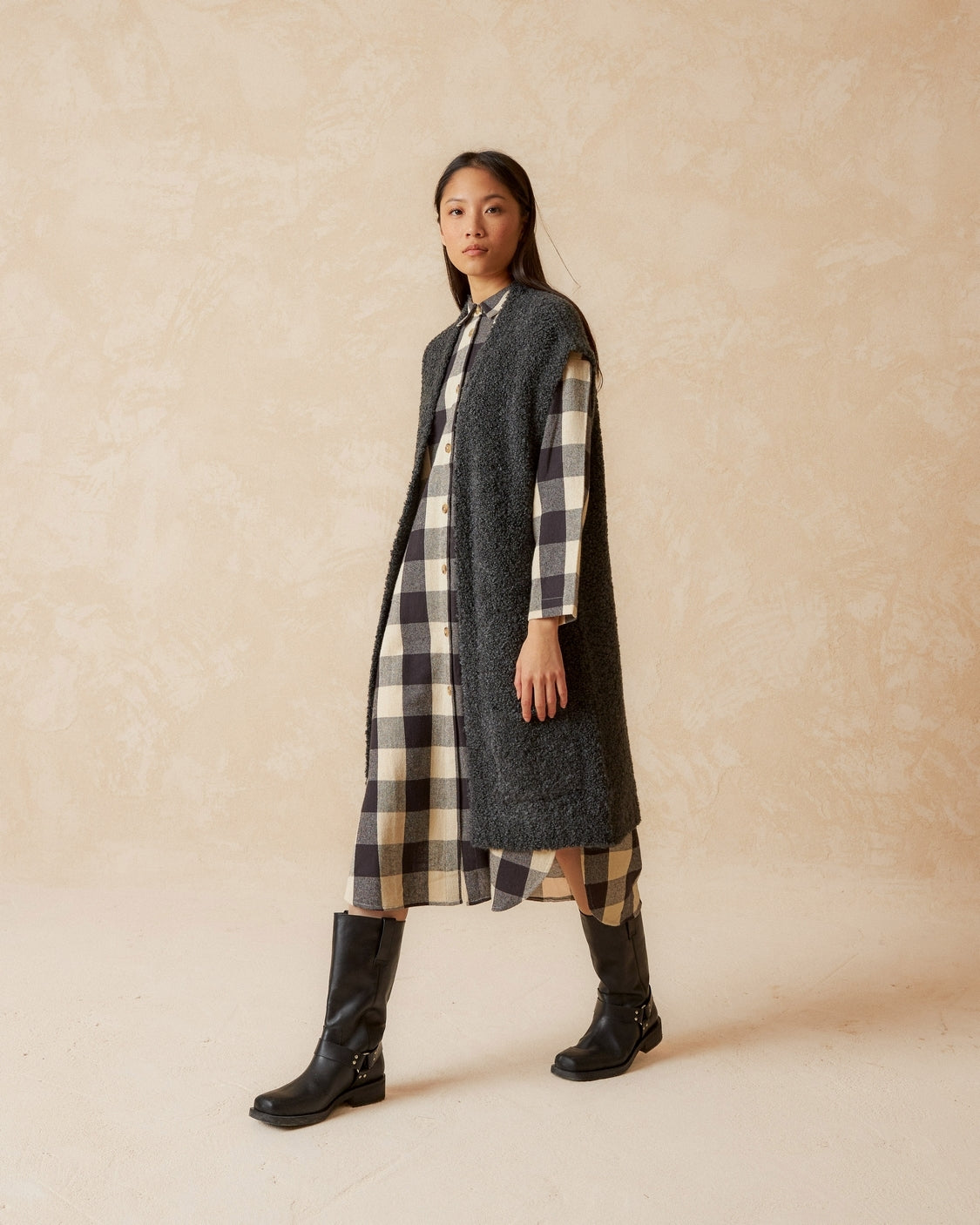 This maxi teddy knit vest is the perfect piece for layering. With a loose, straight cut, wear it over a dress or a jumper and give your look an extra touch. Made from wool and viscose in Italy.