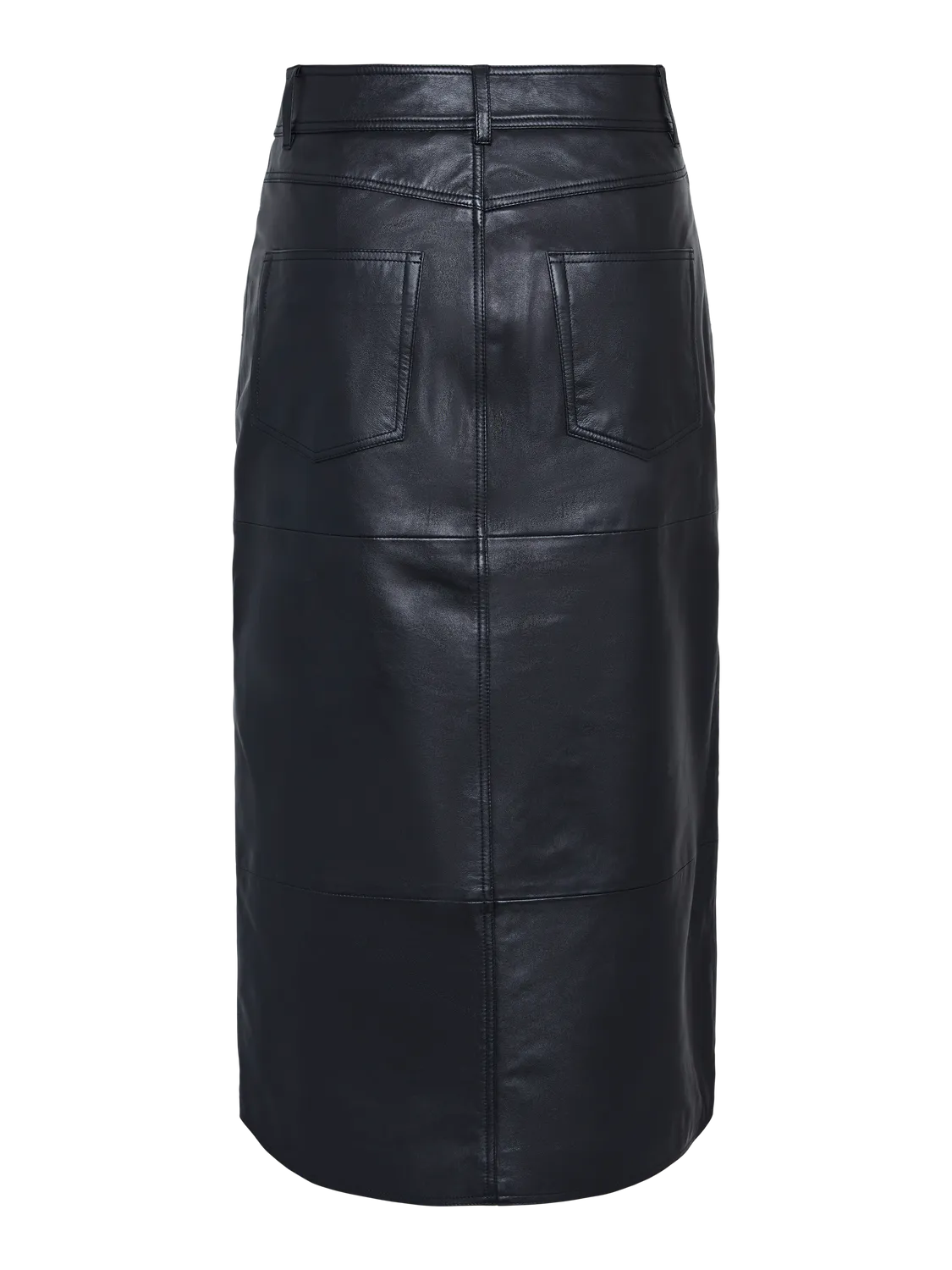 In our selection of carefully crafted leather pieces, you will find a variety of classic and timeless pieces which you will want to keep season after season, together with a handfull of trendy statement pieces. This style is made from real leather, which has an upgraded look and will be a long-lasting item in your wardrobe. Leather is a by-product of the food industry. - Product Type : Leather skirt - Closing : Button and zip fastening - Pockets : Front pockets - Extra details : Front slit
