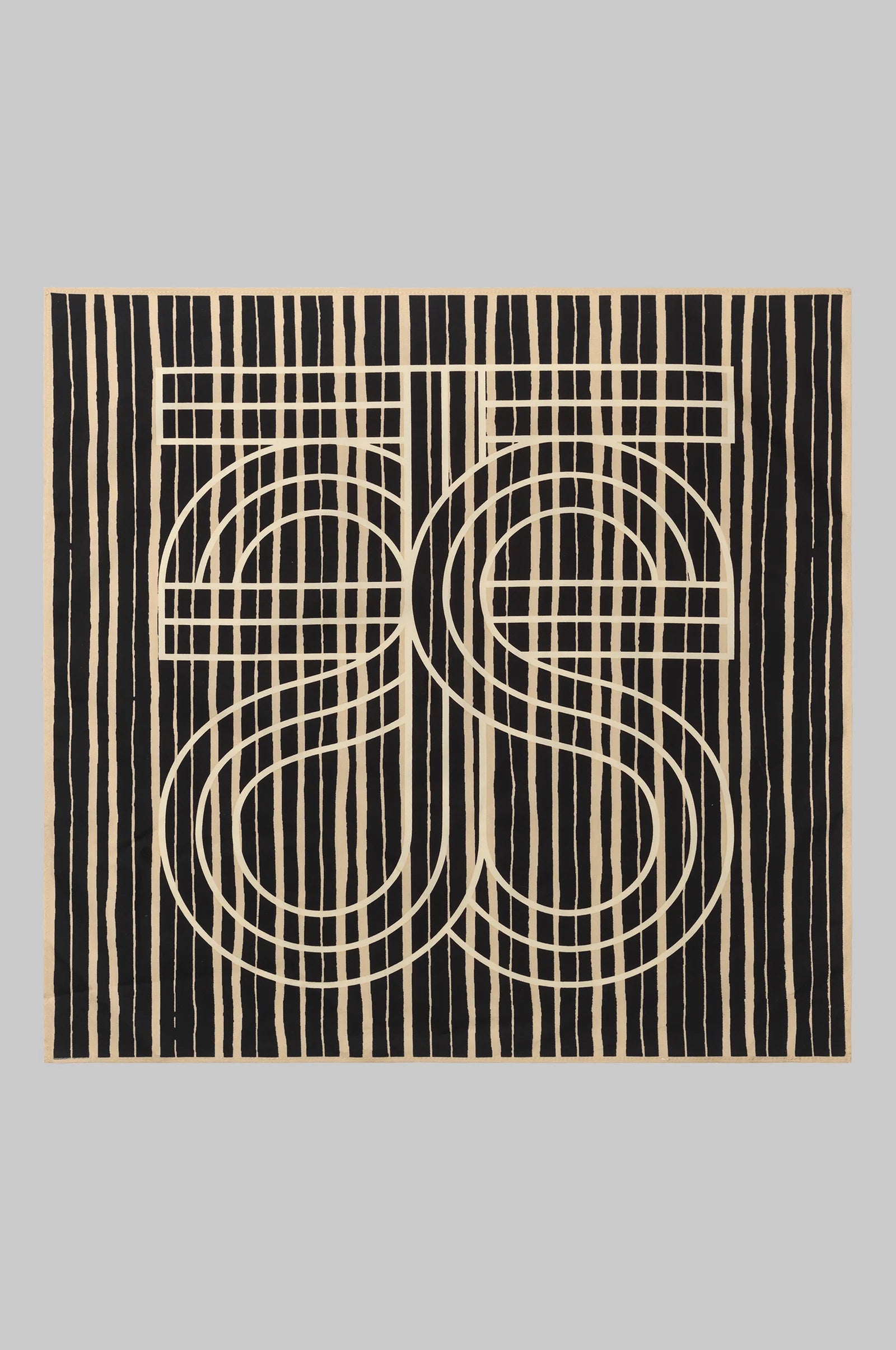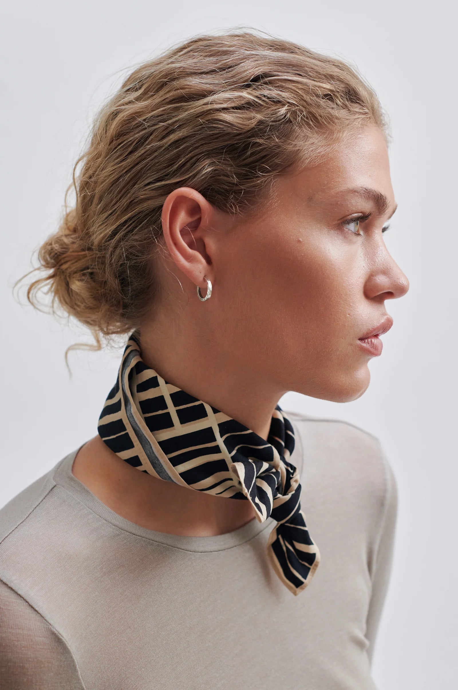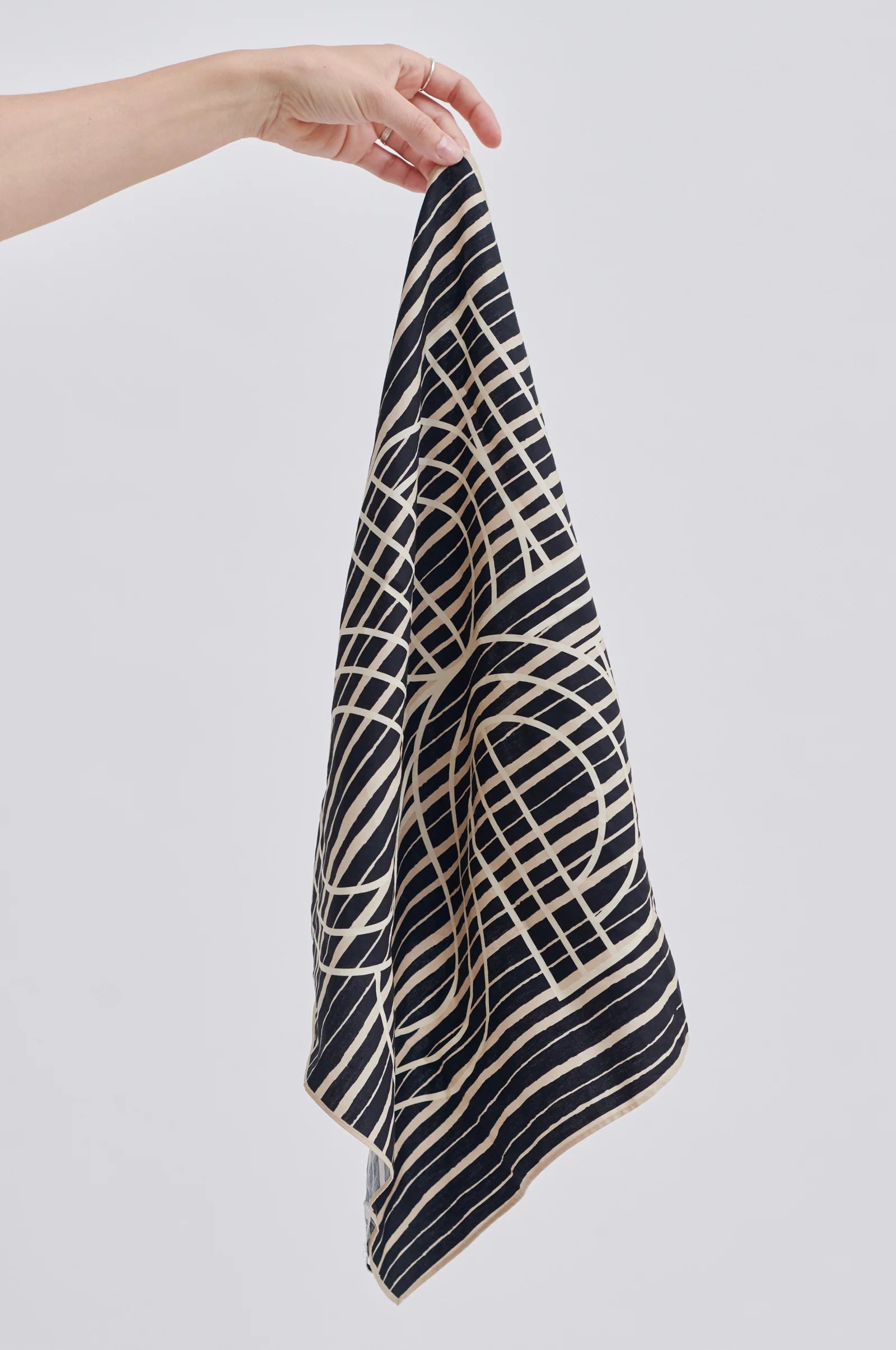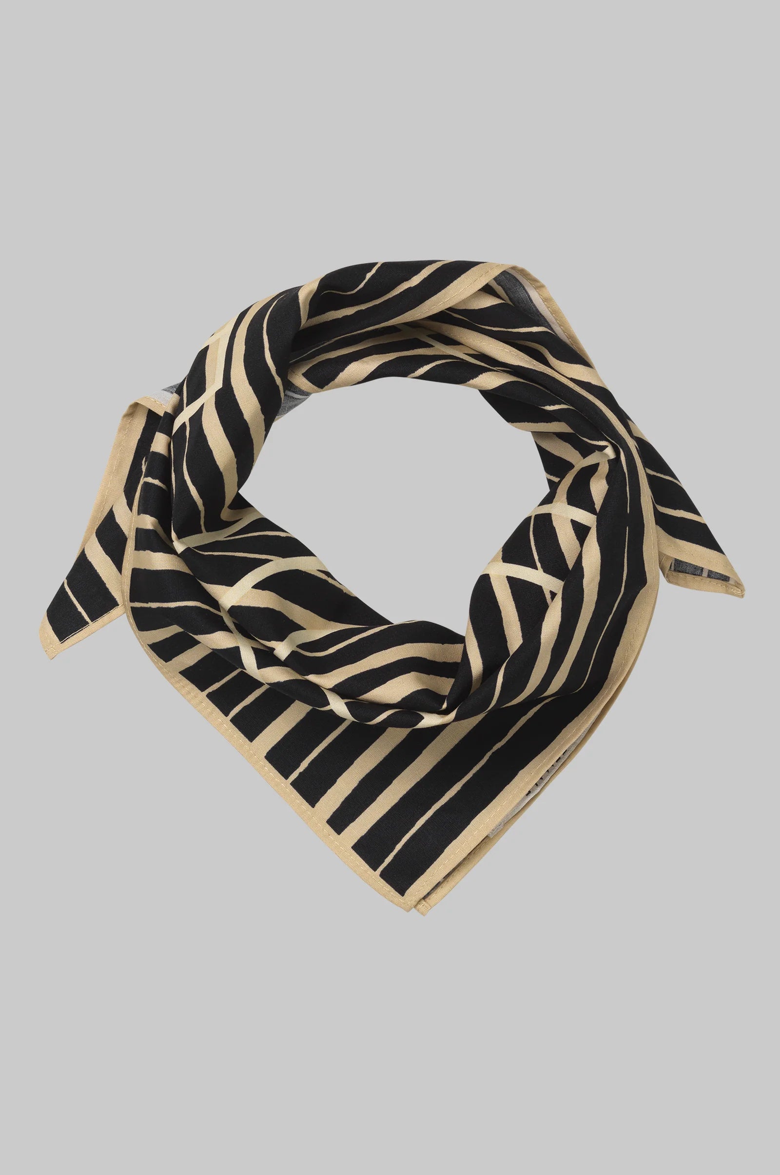 Second Female logo scarf. Made in a lightweight, smooth cotton. Featuring a striped pattern with large logo print in contrast colour. Square shape with contrast solid border around all edges.