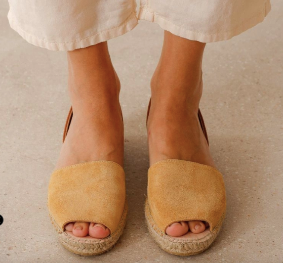 Espadrilles are the summer shoe par excellence. These espadrilles have an esparto grass sole, split leather front and open heel. Made in Spain.
