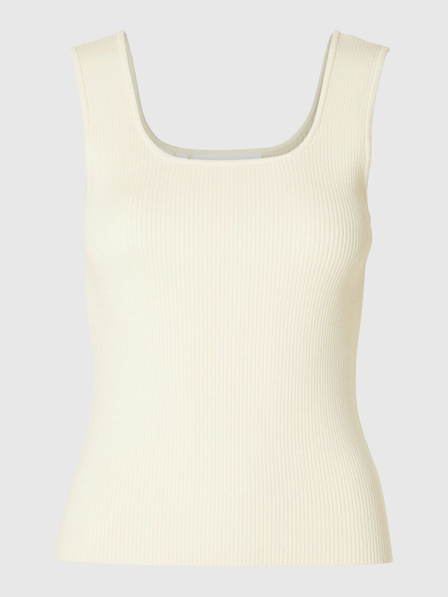 All you need this summer is this ribbed tank top. It has a sleek, structured design and comes in a slim fit, making it ideal to wear as a base layer or on its own. Style it with a linen midi skirt and sandals. - Square neckline - Thick shoulder straps - Sleeveless design - Ribbed fabric - Slim fit