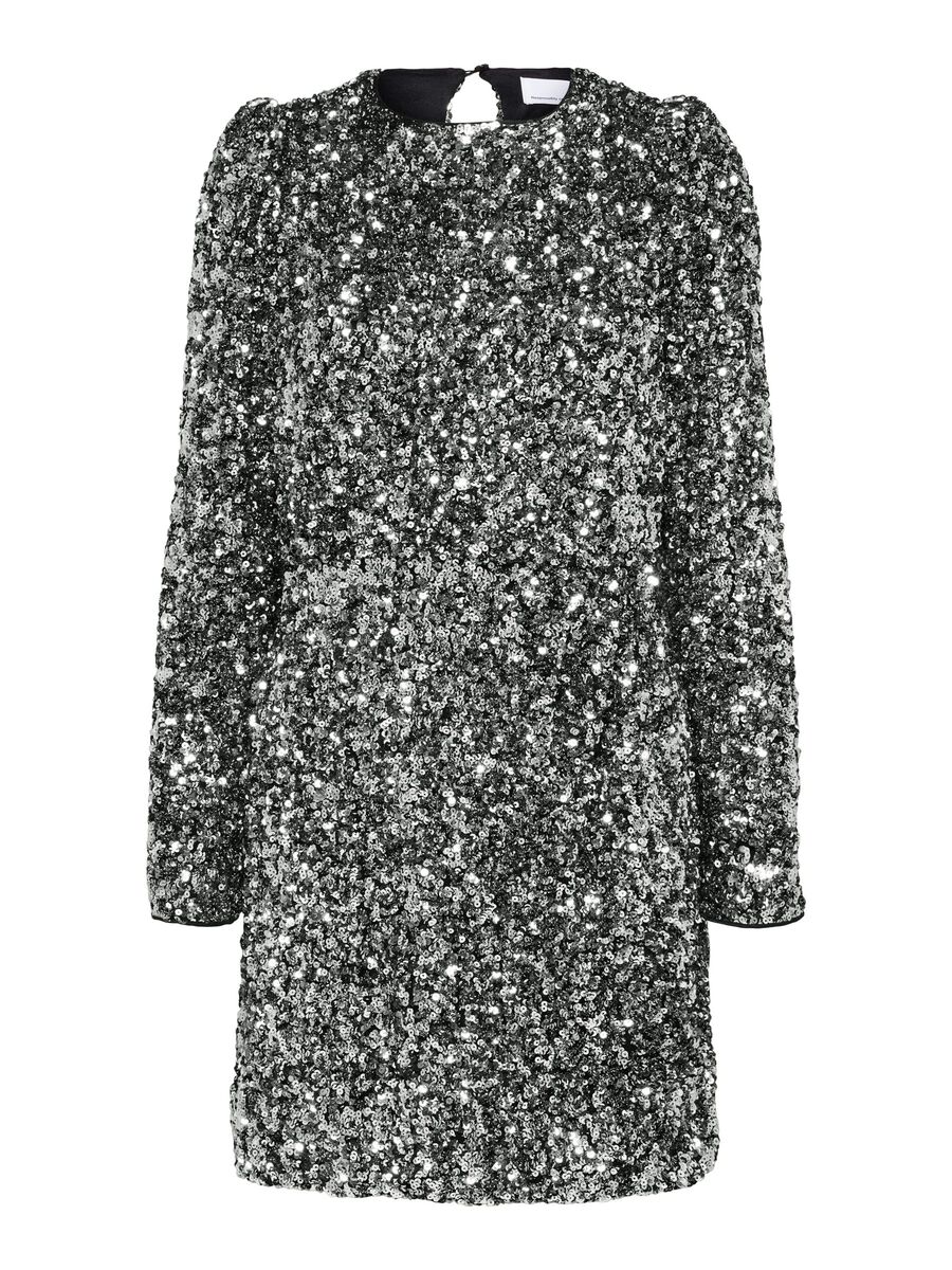 If this dress doesn’t scream ‘party’, we don’t know what does! Be the belle of the ball in this long-sleeved dress dripping in sequins, featuring long puff sleeves that add a bit of volume. Why not go all the way and add a pair of sky-high heels and gold hoops to complete your ensemble? Just make sure to bring a pair of flats for when the dancefloor starts calling your name… - Round neck - Long puff sleeves - Keyhole back with button closure - Cutline at waist - Sequin design - Straight hemline