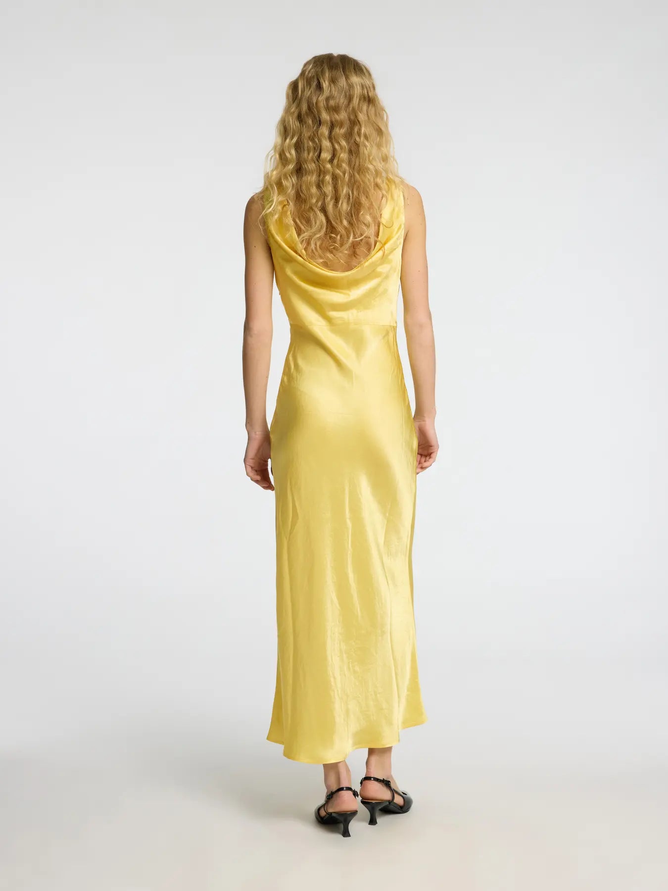 Celebrate timeless minimalism with this beautiful sleeveless midi dress. It’s made from smooth and soft acetate, giving it a silky and shiny look that’s exceptionally comfortable and luxurious. Wear it for a special occasion, and style it with sling-back heels, a clutch bag, and statement earrings. - Round neck - Low cowl back - Concealed zip fastening - Regular fit
