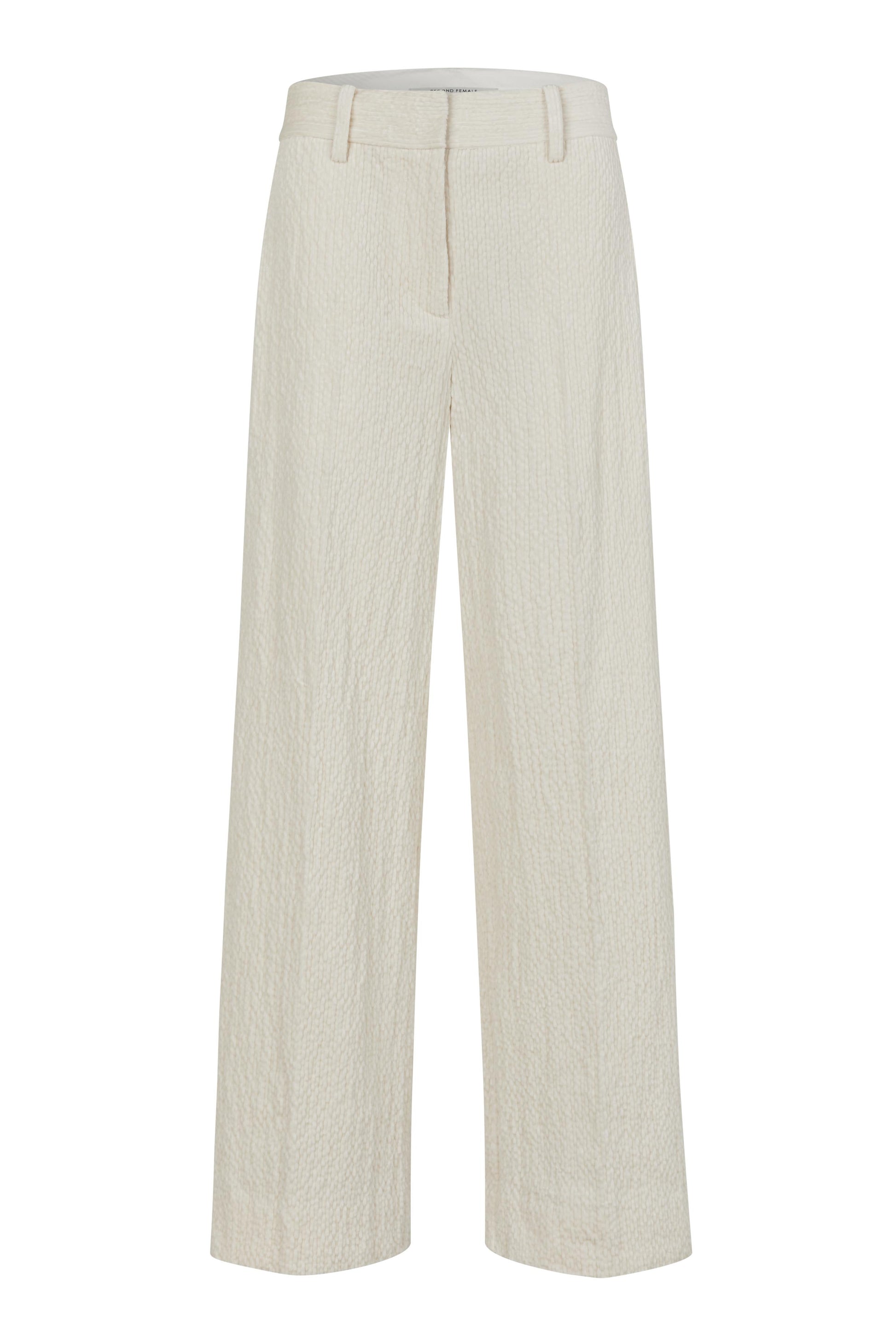 Second Female seersucker trousers. The trousers are made in a lightweight cotton with seersucker structure. Featuring a concealed zip, hook and button fastening. Two front pockets and two decorative pockets at the back. Belt loops and pleats at front. Regular waist with wide, straight leg