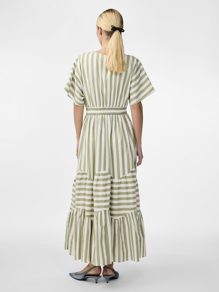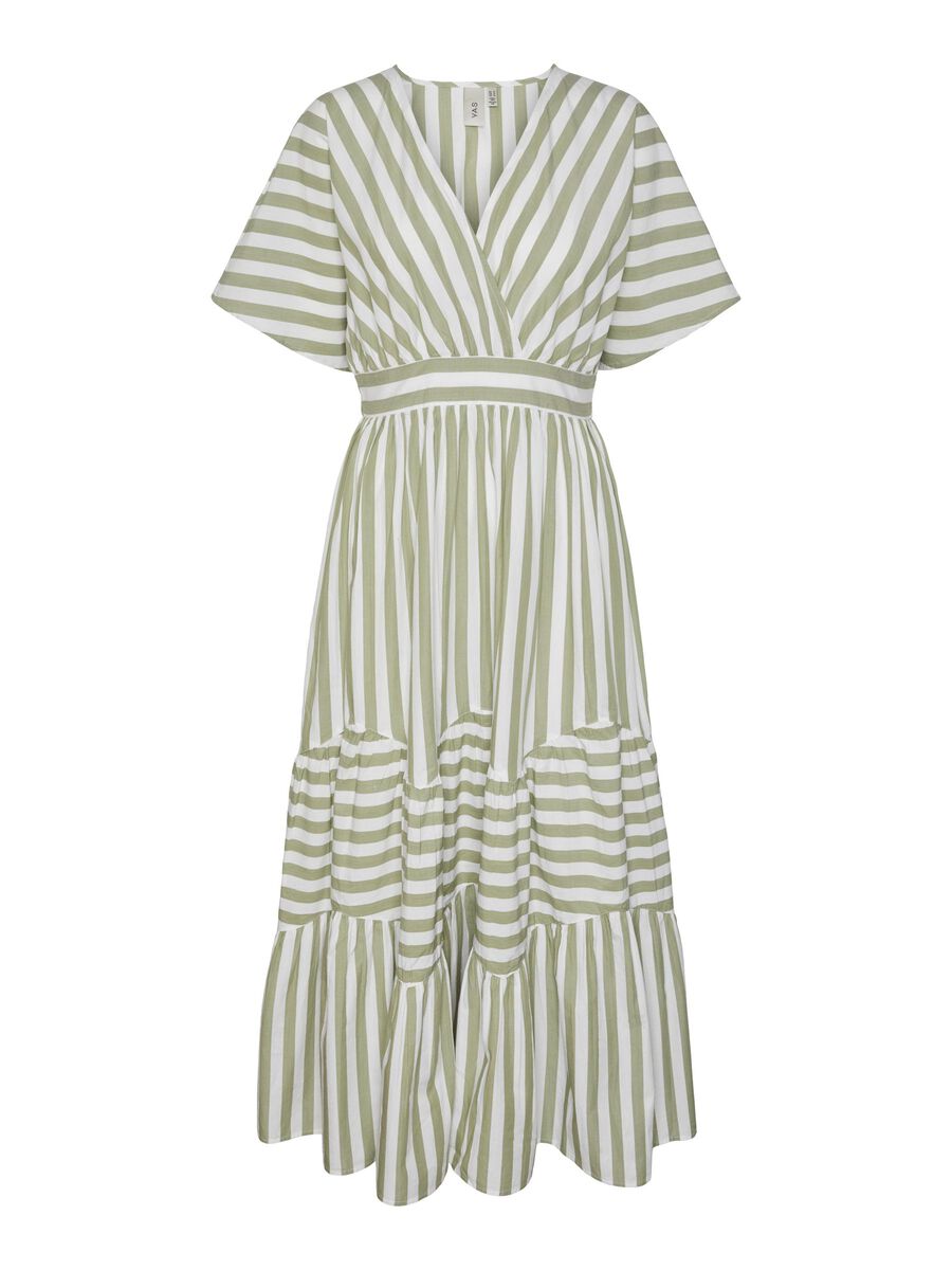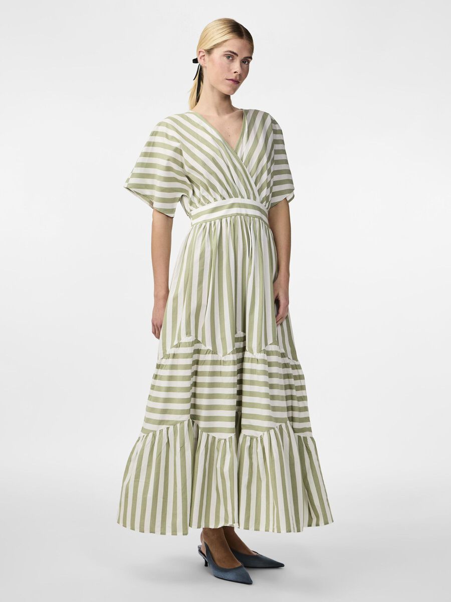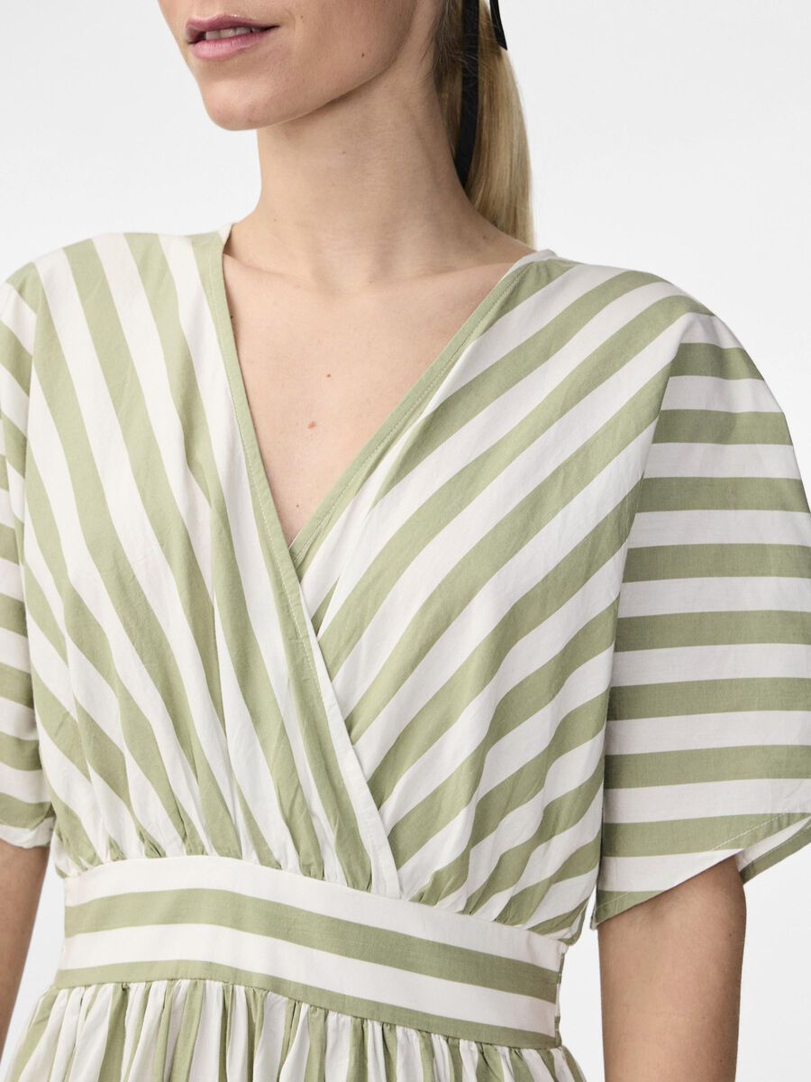 - Printed midi dress - Surplice neckline - Half-length bell sleeves - Banded panel at waist - Cutlines at skirt - Regular fit